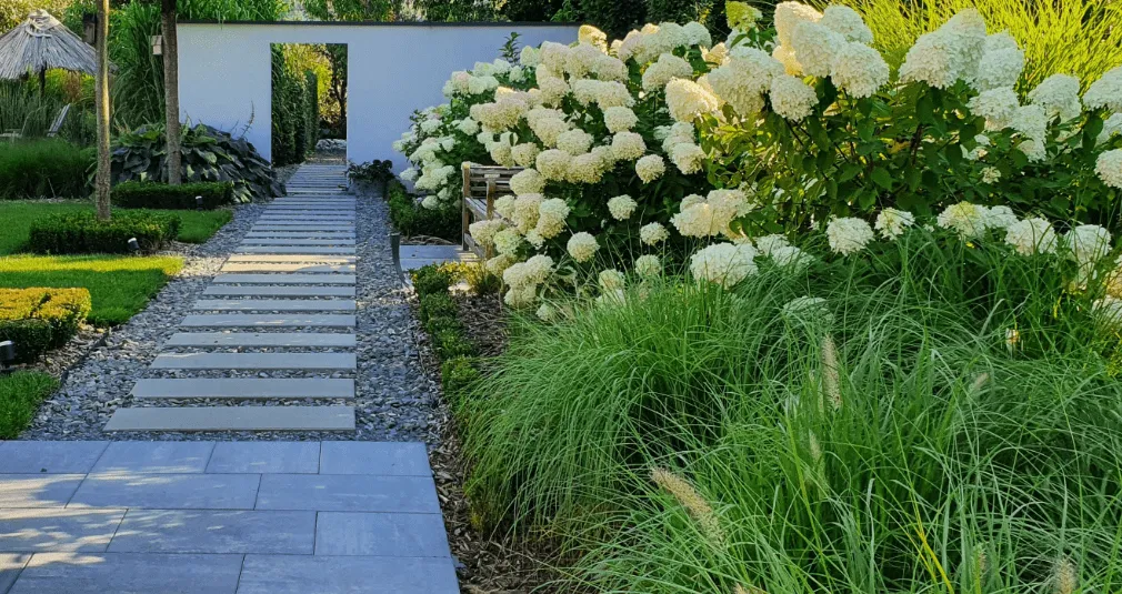→ Leistungsumfang: Planung, Pflanzung, Pflasterbau, Bewässerung, Rasenanlage